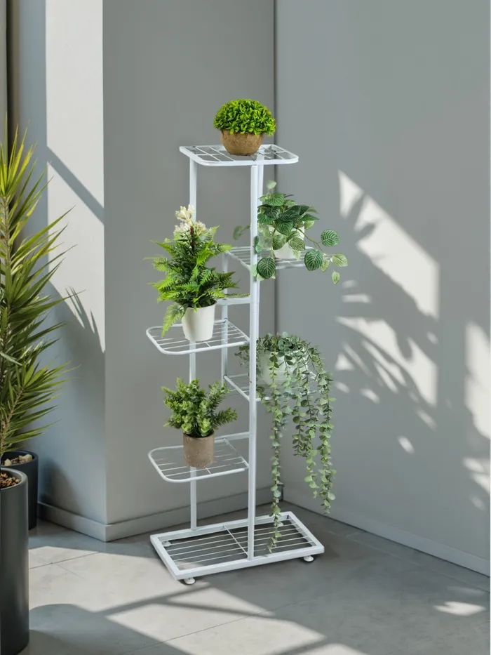 Подставка для цветов Greengo, 6 полок, 44×22×105 см, напольная, металл, белая