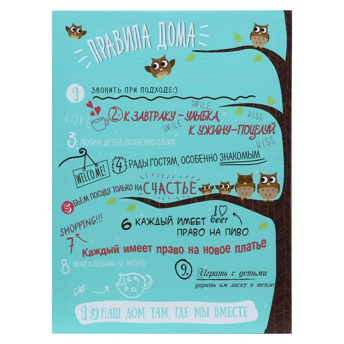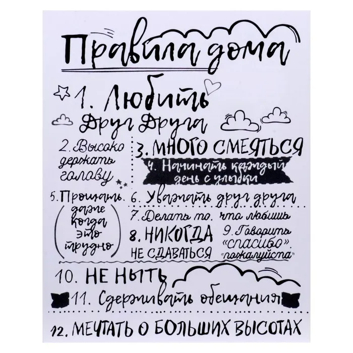Картина-холст на подрамнике "Правила дома" на белом 40х50 см