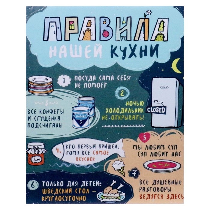 Картина-холст на подрамнике "Правила нашей кухни" на синем 40х50 см