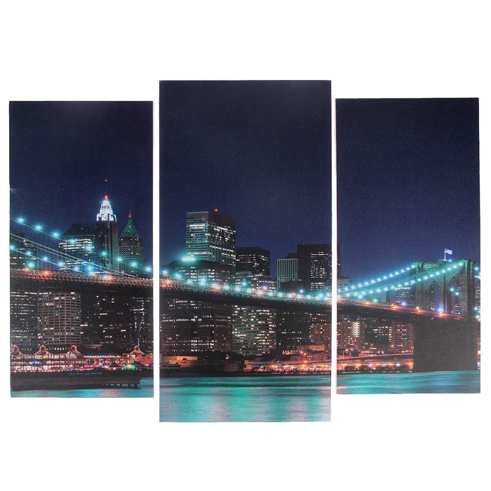 Модульная картина «Ночной мост», (2-25×52; 1-30×60), 60×80 см