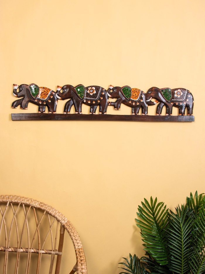 Панно «Семья слонов», 100×1.5×18 см, дерево, МИКС