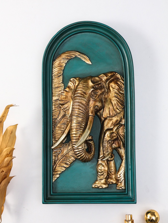 Панно настенное полистоун «Слоны в джунглях», зелёный с золотом, 18.7×7.5×36.7 см