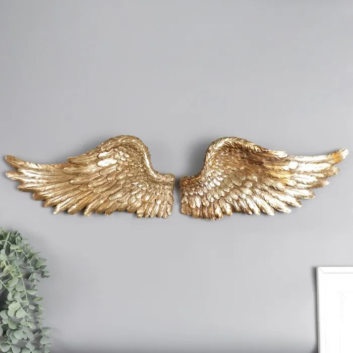 Настенный декор «Золотые крылья», набор 2 шт., панно декоративное, полистоун, размер крыла: 18×41×6 см