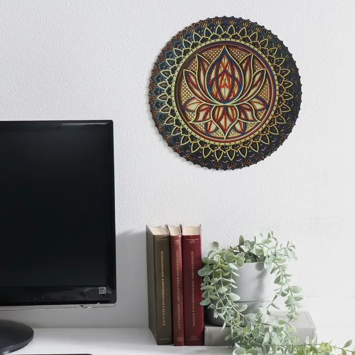 Панно настенное металл "Цветок лотоса" цветной 30х0,8х30 см