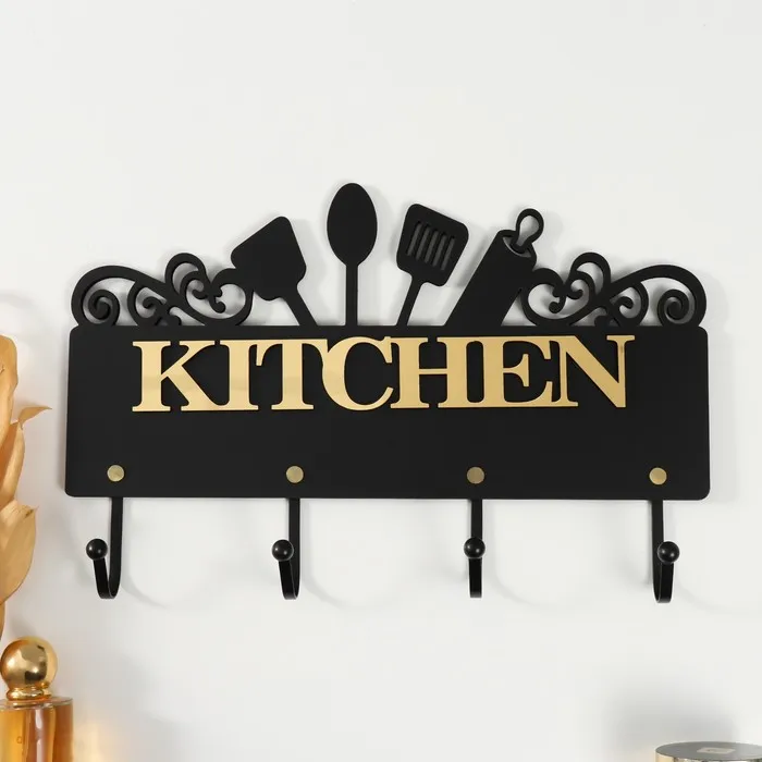 Настенные крючки декоративные «Кухонные принадлежности», дерево, чёрный, зеркальный, 4.3×34×22.3 см