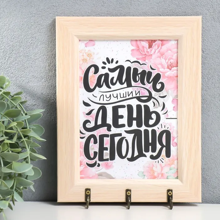 Ключница настенная «Самый лучший день», крючки декоративные, панно, 17×22 см, молочный дуб