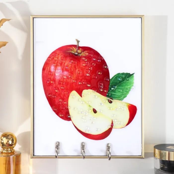Настенные крючки декоративные «Красное яблочко», 3 крючка, пластик, МДФ, стразы, золото, 18.5×1.8×23.5 см
