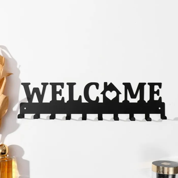 Крючки декоративные металл "Добро пожаловать. Дом" чёрный 1,9х32,9х8,2 см