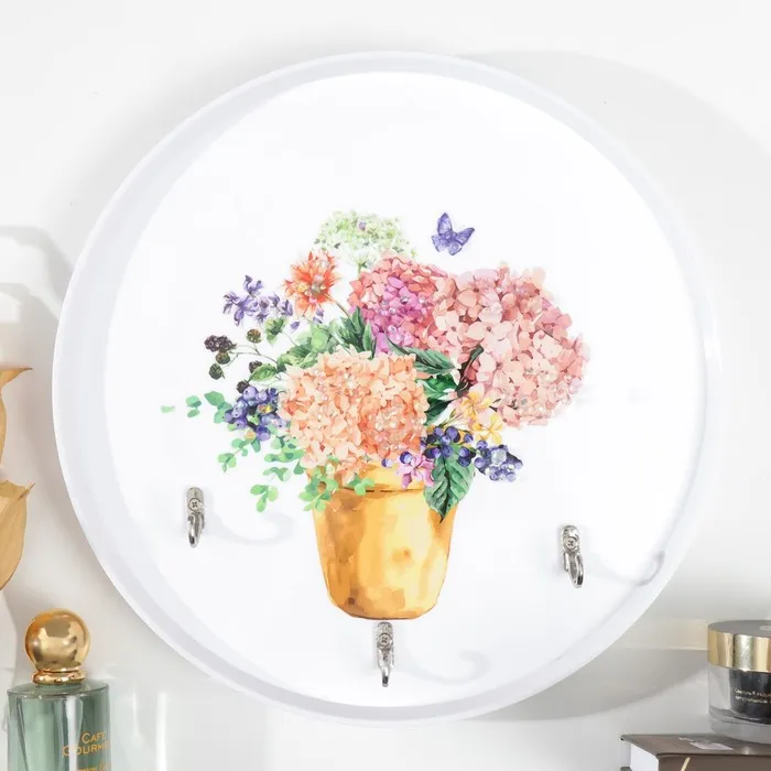 Крючки декоративные 3 крючка "Гортензии в горшке" 30х30 см