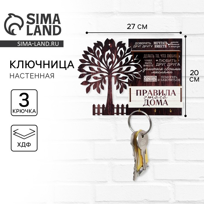 Ключница настенная с полкой «Правила дома».