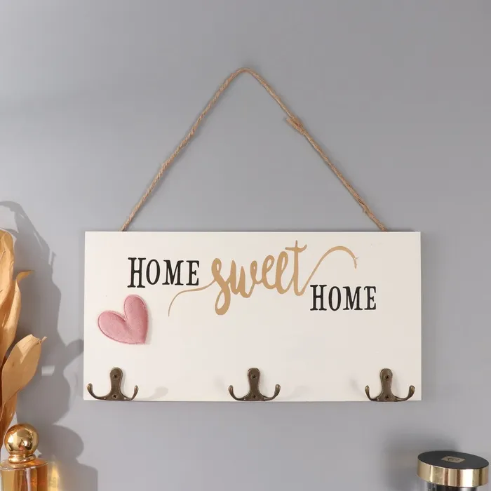Настенные крючки декоративные «Дом, милый дом. Сердце», дерево, с золотом, 30×15 см