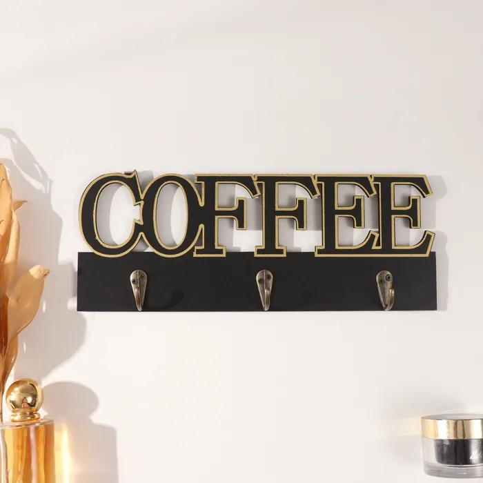 Настенные крючки декоративные «Кофе», дерево, чёрный с золотом, 3×30×12 см