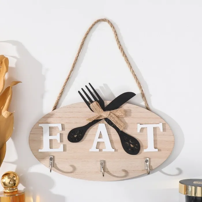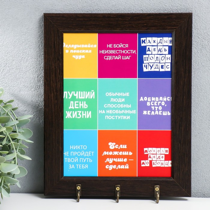 Ключница настенная «Фразы», крючки декоративные, панно, 20×25 см, венге