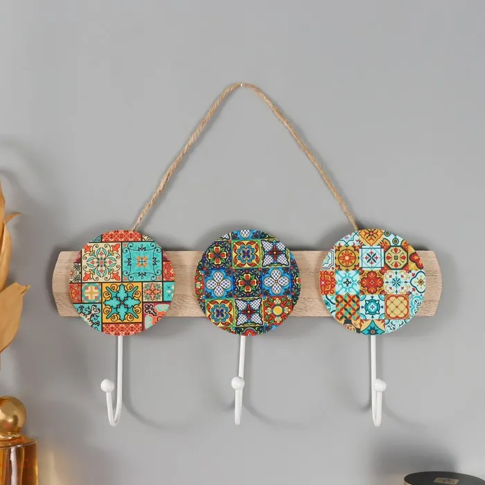 Настенные крючки декоративные «Яркие узоры», дерево, 30×14.5×5 см