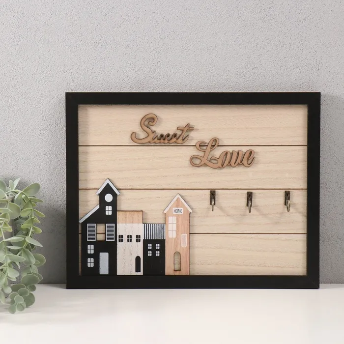 Настенные крючки декоративные «Домики в раме», дерево, 31×24 см