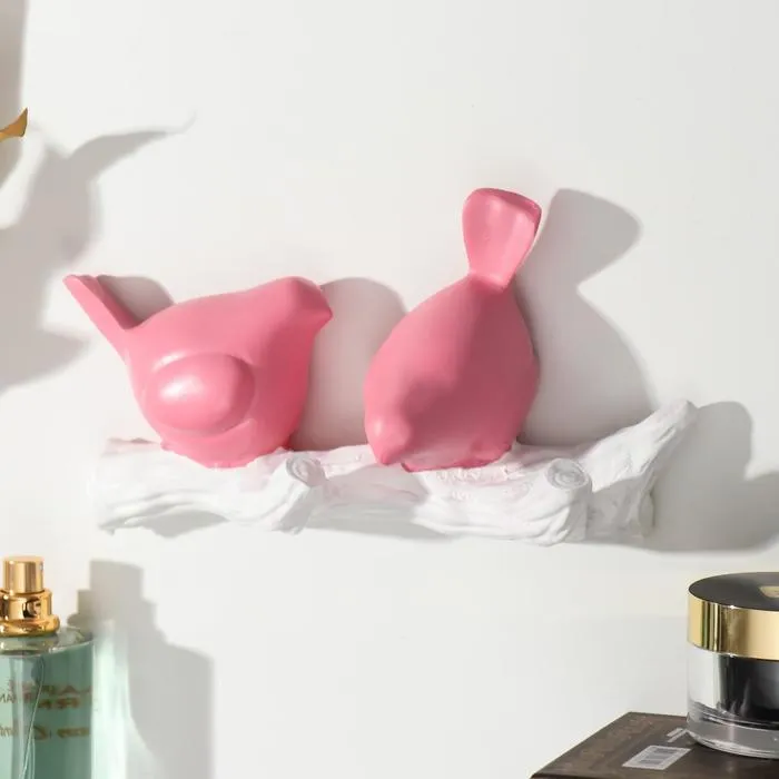 Крючки декоративные полистоун "Две птички на ветке" розовые 10,5х5,5х21 см
