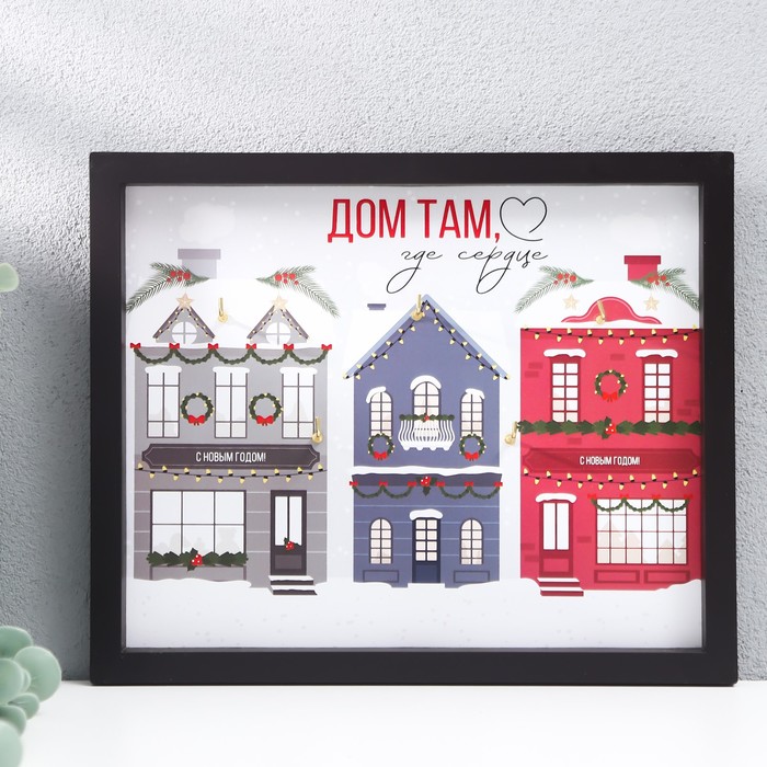 Ключница настенная новогодняя «Счастливый тот кто счастлив дома», на Новый год