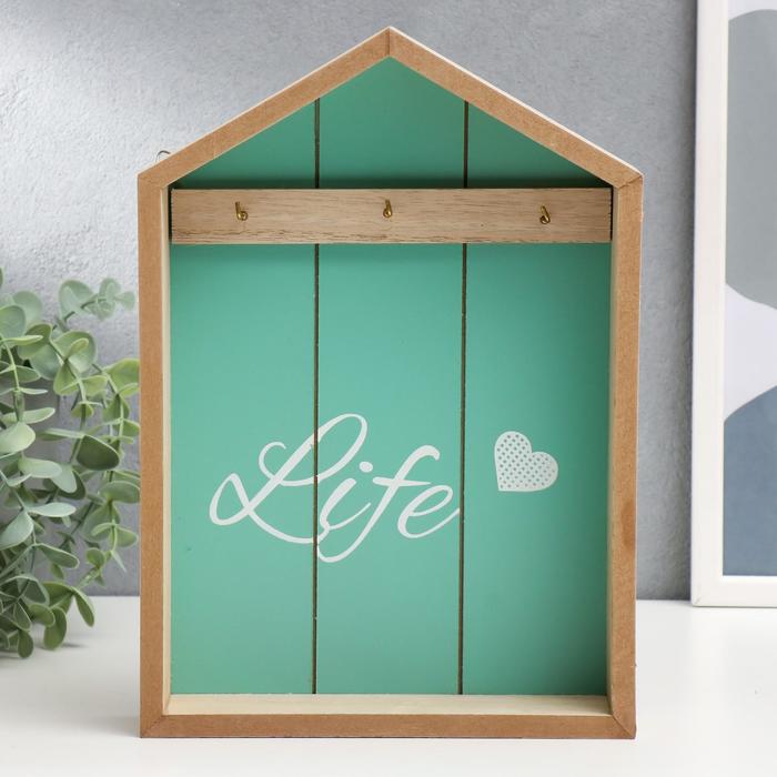 Крючки декоративные дерево «Life с сердцем», ключница настенная, панно, зелёный, 28×20×5 см