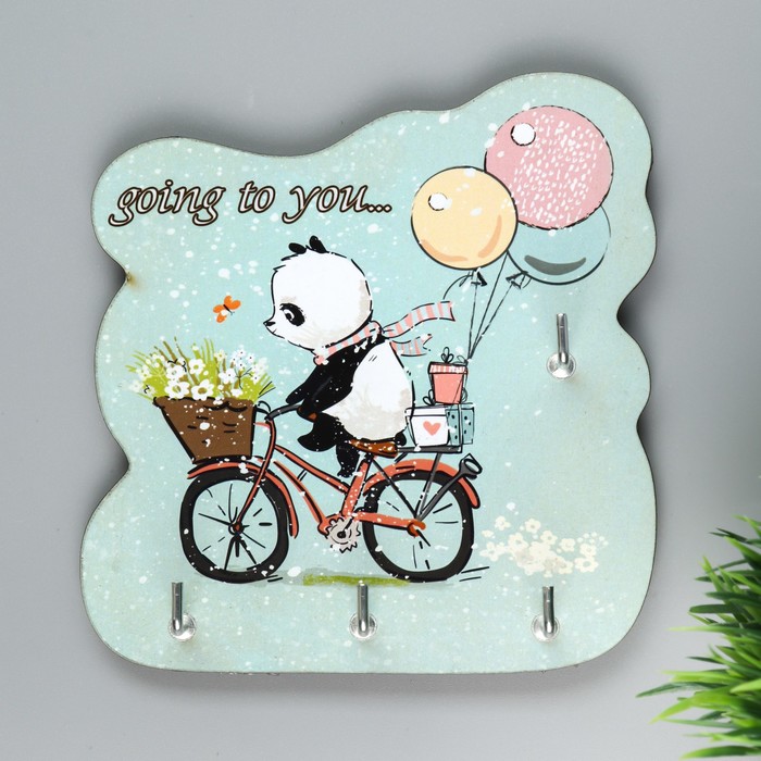 Ключница настенная «Панда на велосипеде», крючки декоративные, панно