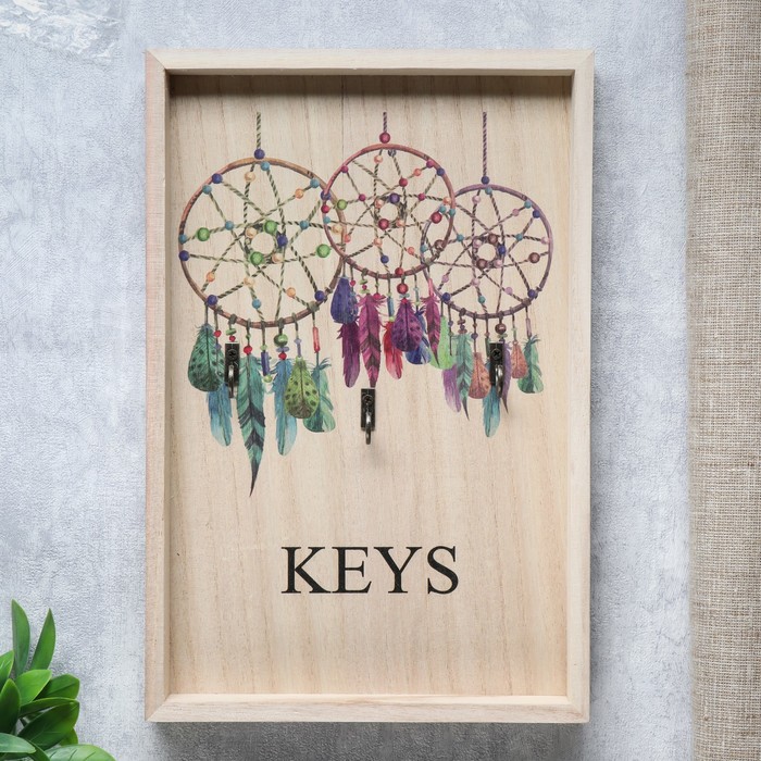 Крючки декоративные дерево «Ловцы снов», ключница настенная, панно, 29.8×19.8×2.7 см