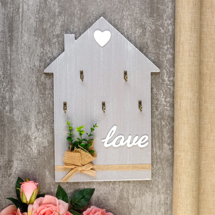 Крючки декоративные дерево "Домик с букетиком" 34х2,5х24 см