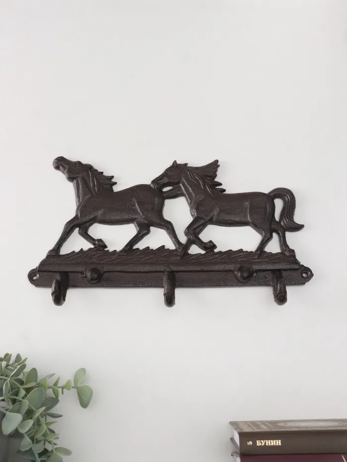 Настенные крючки декоративные «Двойка коней», чугун, 30×4×18 см