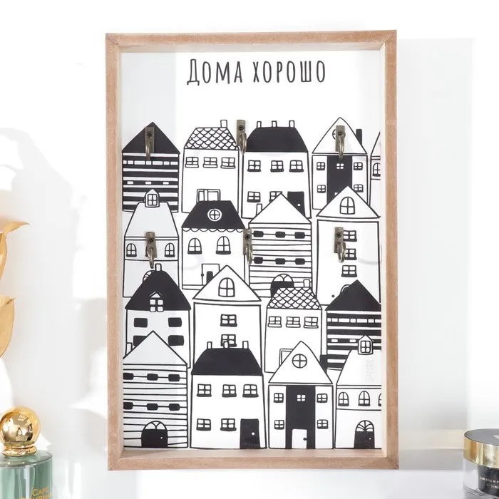 Настенные крючки декоративные «Домики», дерево, 30×20×3 см