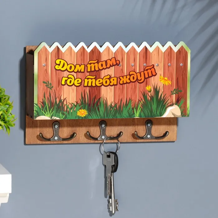 Ключница «Дом там, где тебя ждут», 3 отделения, 24×19×6 см