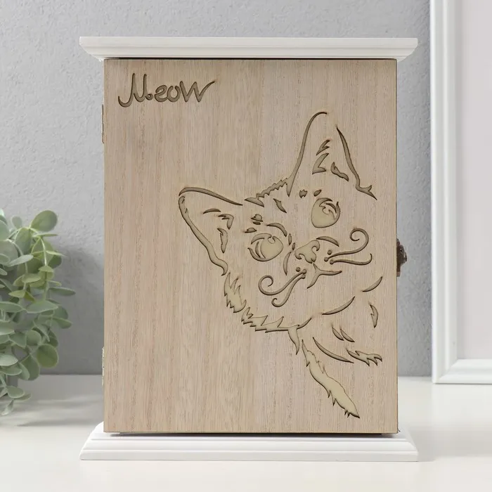 Ключница настенная «Котик», дерево, 6 крючков, 26.5×20.8×6.3 см
