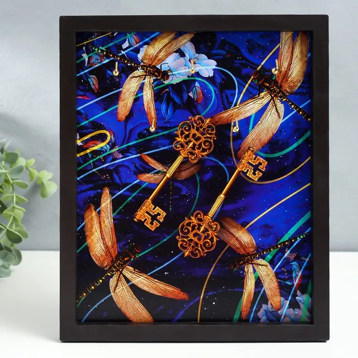 Ключница настенная «Стрекозы», крючки декоративные, панно, 27×22 см