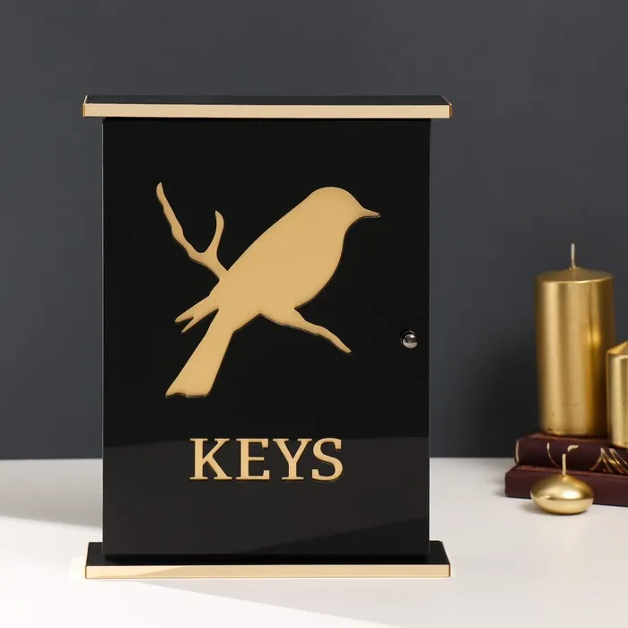 Ключница настенная «Птица на ветке», дерево, чёрная, зеркальная 6×22.3×29.5 см