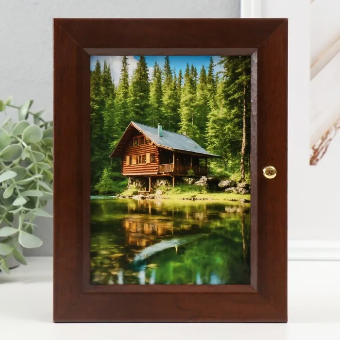 Ключница настенная «Дом на берегу», панно декоративное, 17×22 см, орех