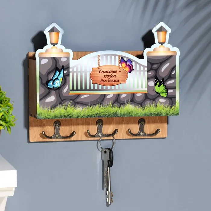 Ключница «Счастье - когда все дома» 3 отделения, 24×19×6 см
