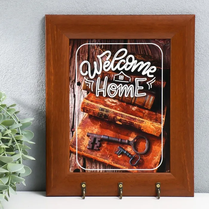Ключница настенная «Велком хоум», крючки декоративные, 22×27 см орех