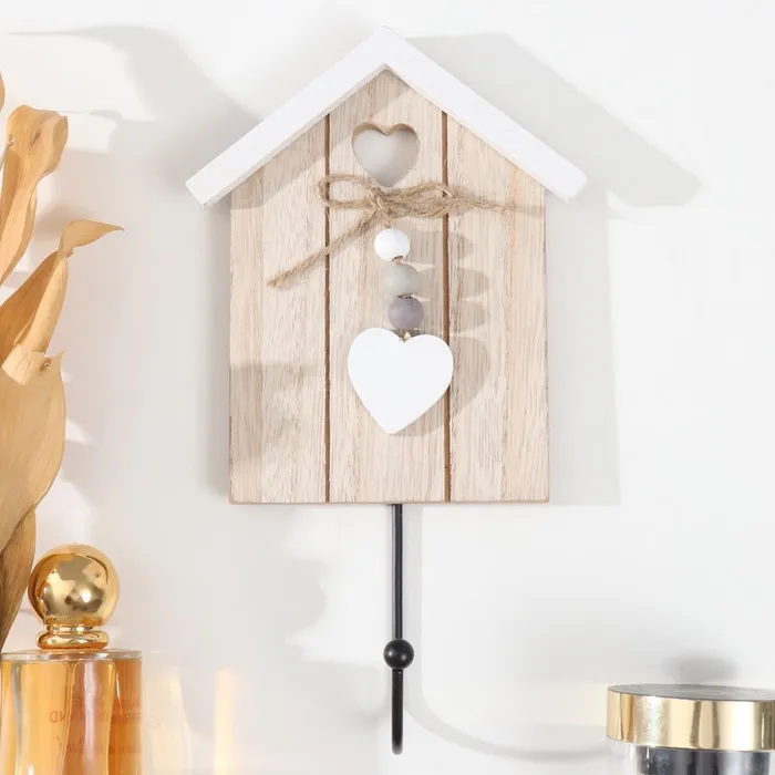 Настенный крючок декоративный «Дом. Сердце», дерево, 13×0.8×23 см
