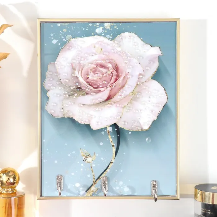 Ключница пластик, МДФ 3 крючка "Нежная роза" стразы, золото 18,5х1,8х23,5 см