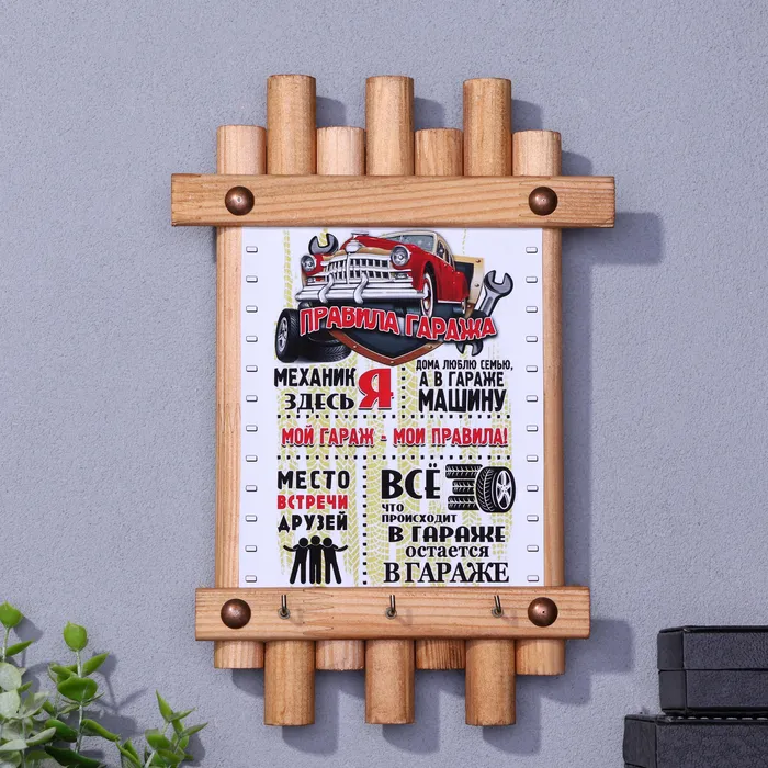 Ключница-панно "Правила гаража", 24 х 16 см, ель