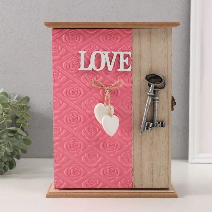 Ключница настенная «Круги. Ключи и сердце», дерево, 6 крючков, розовый 6.5×20×26.5 см
