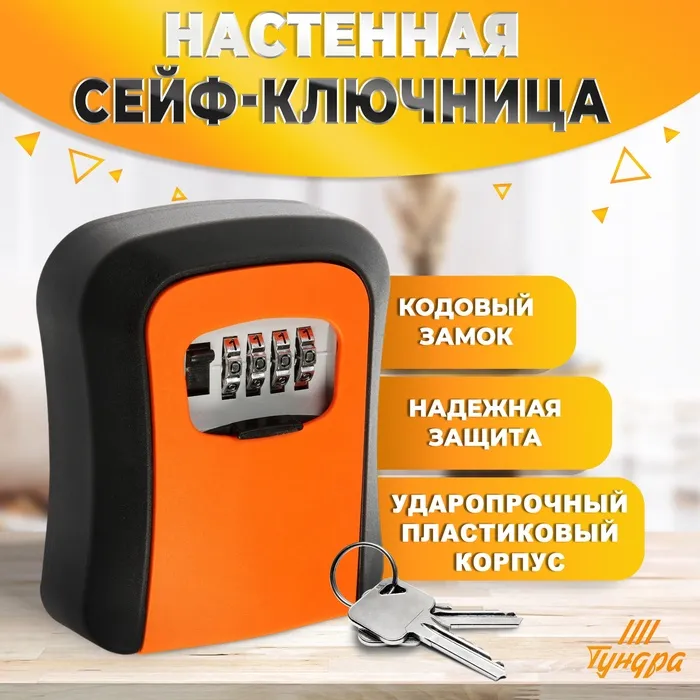 Сейф-ключница кодовая ТУНДРА, металлическая, усиленная, оранжевый