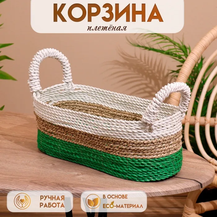 Корзина плетеная, 45х35х12 см, камыш