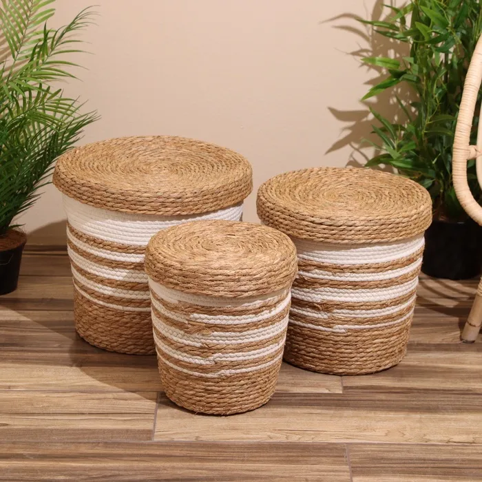 Набор плетёных корзин с крышкой, 3 шт, 36х36х37 см