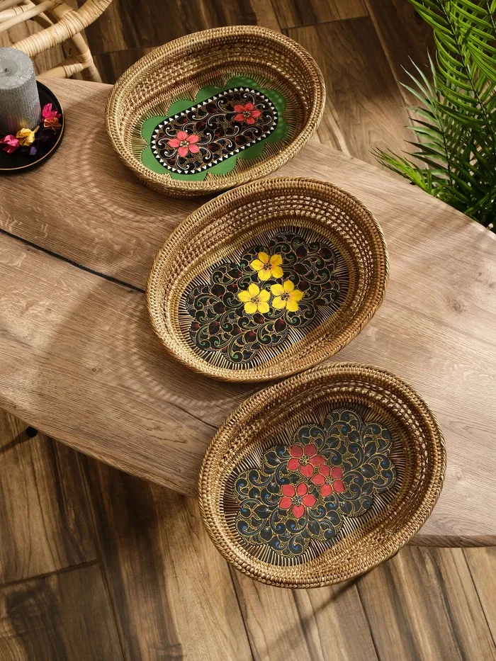 Набор корзин плетёных, круглые 3 шт. L:d=35 высота 12 см, высота с ручкой 38 см, дно 38 см