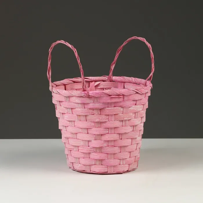 Корзина плетеная, D16 х 13,5 х 20 см, розовая, бамбук