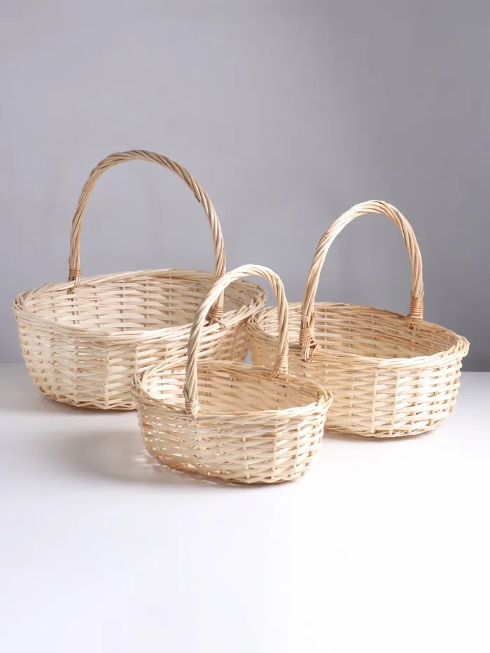 Набор корзин плетёных, овальные 3 шт. L: 36×29 см, Н 13 см, Н с ручкой 37 см.M: 30×24/ 11H/ 30THS: 25×19/ 9H