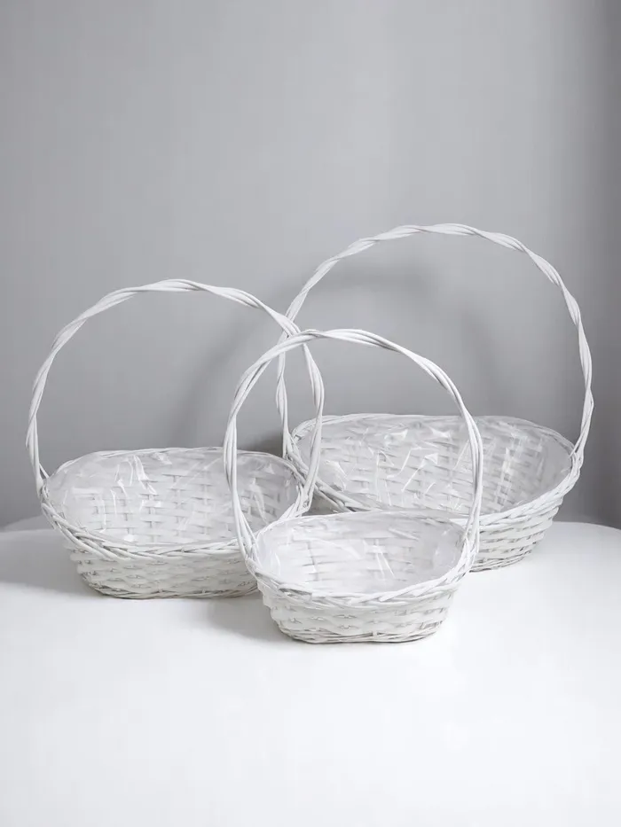 Набор корзин плетёных, овальные 3 шт. 27×21 см, высота 10/14 см, высота с ручкой 29 см, дно 16×16 см