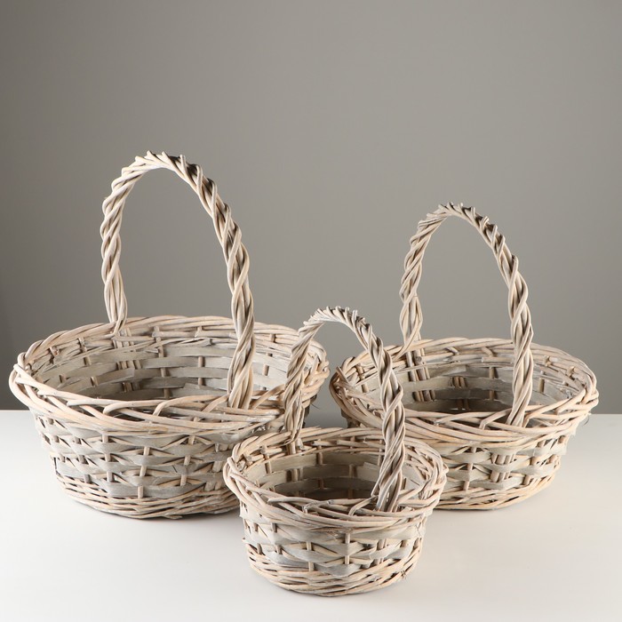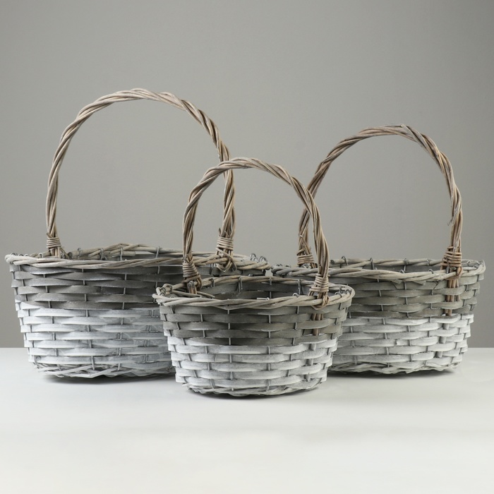 Набор корзин плетёных, 39×30×15×37 см, 33×25×13.5×32 см, 27×20×12×27 см, 3 шт., серые, ива