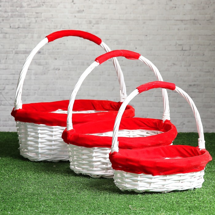 Корзина плетёная для хранения, ива, белая, красная, набор 3 шт.