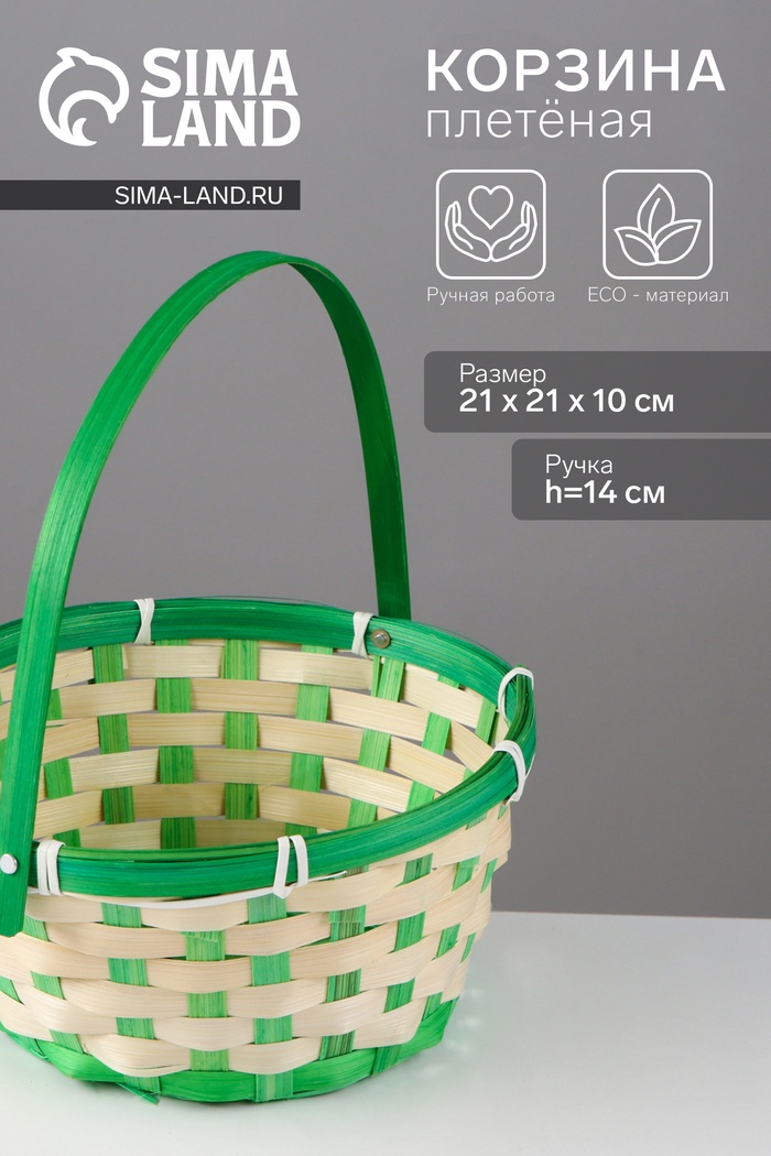 Корзина плетёная, 21×21×10 см, ручка h=14 см, бамбук, зелёная