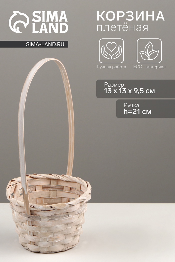 Корзина плетёная, 13×13×9.5 см, ручка h=21 см, бамбук, серая