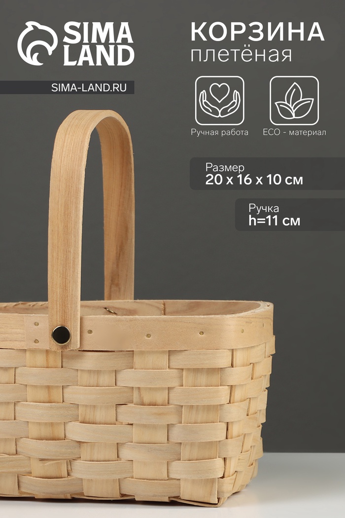 Корзина плетёная, 20×16×10 см, ручка h=11 см, ива, натуральный цвет